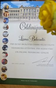 Mēs ļoti lepojamies ar mūsu taut! Lāsmu Balceraiti, kura ir saņēmusi cildinājumu par izcilu skolotāja darbu Rīgas Valsts tehnikuma attīstībai, par aizrautību un degsmi pienākumu izpildē. ![]()